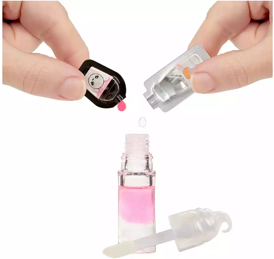 - мини-кукла, аксессуары, ингредиенты для создания блеска для губ, кольцо для подвеса