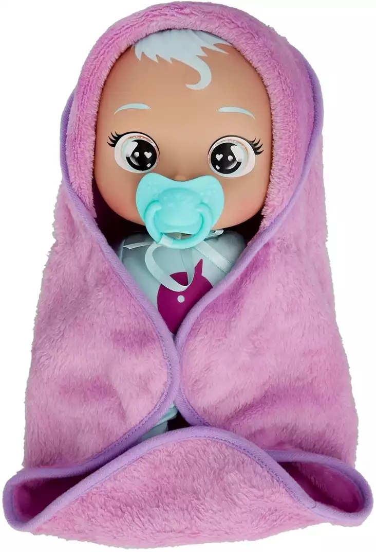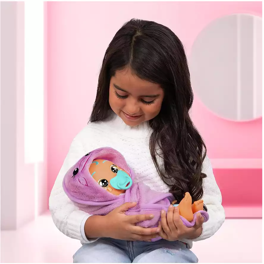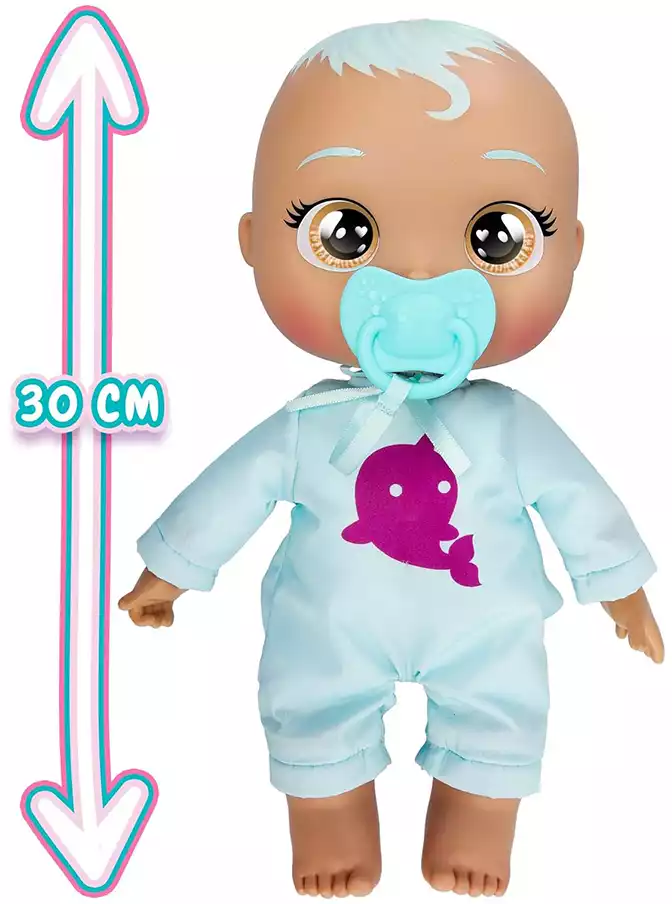 Она реагирует на воду! Малышка лепечет, хихикает и плачет при контакте с водой. С ней можно купаться вместе! После купания оберни её в мягкое полотенце и дай пустышку. Но не стоит расстраивать обворожительную малышку! Если нажать на ее голову, она начнет плакать настоящими слезами.