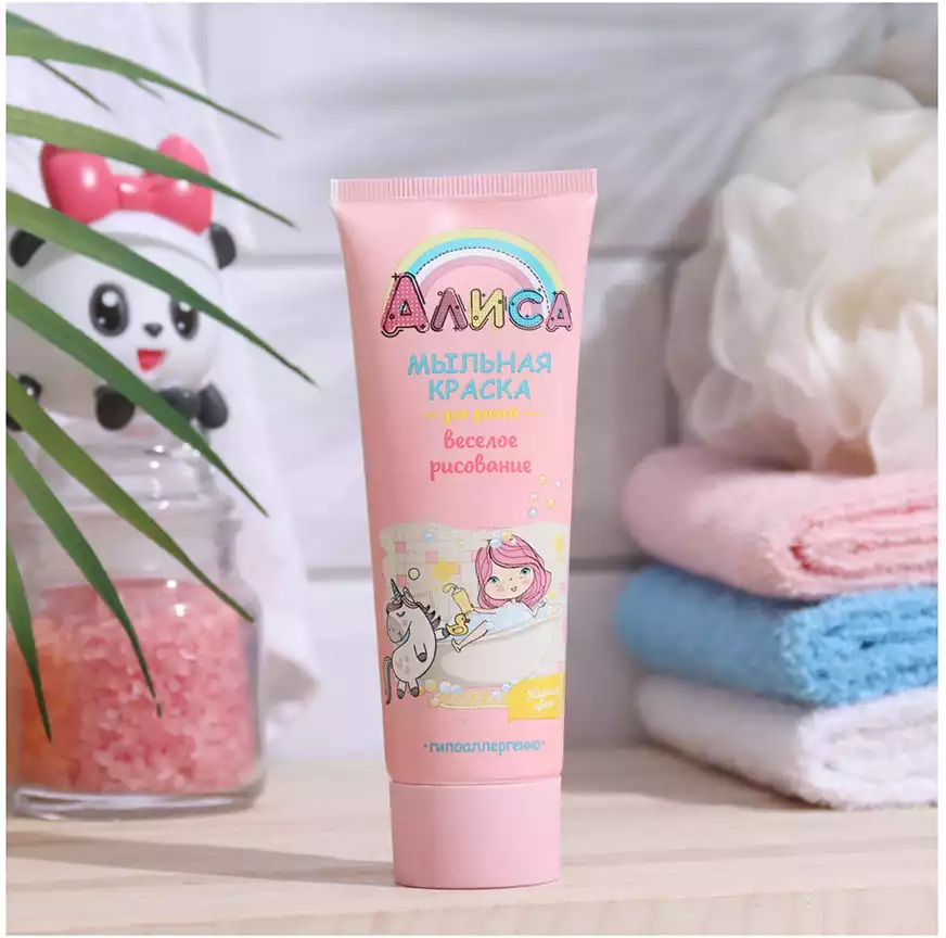 В корзинуМыльная краска «Алиса» – это очень доступное по цене универсальное средство для весёлого купания детей, которое ребенок может использовать для рисования на плитке в ванной и на себе самом. Маме останется только выдавить на ладошку малыша выбранный им цвет: малиновый, желтый или зеленый. Очень важно, что входящие в состав мыльных красок красители – пищевые. Значит – абсолютно безвредны для детей. Да и состав в целом, как и положено в детской продукции – гипоаллергенный. Родителям также полезно будет знать, что мыльная краска «Алиса» легко смывается водой.